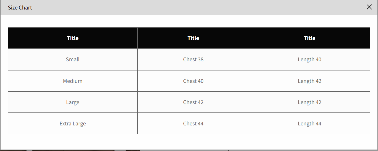 Sizes: S (36–38), M (40–42), L (44–46), XL (48–50)